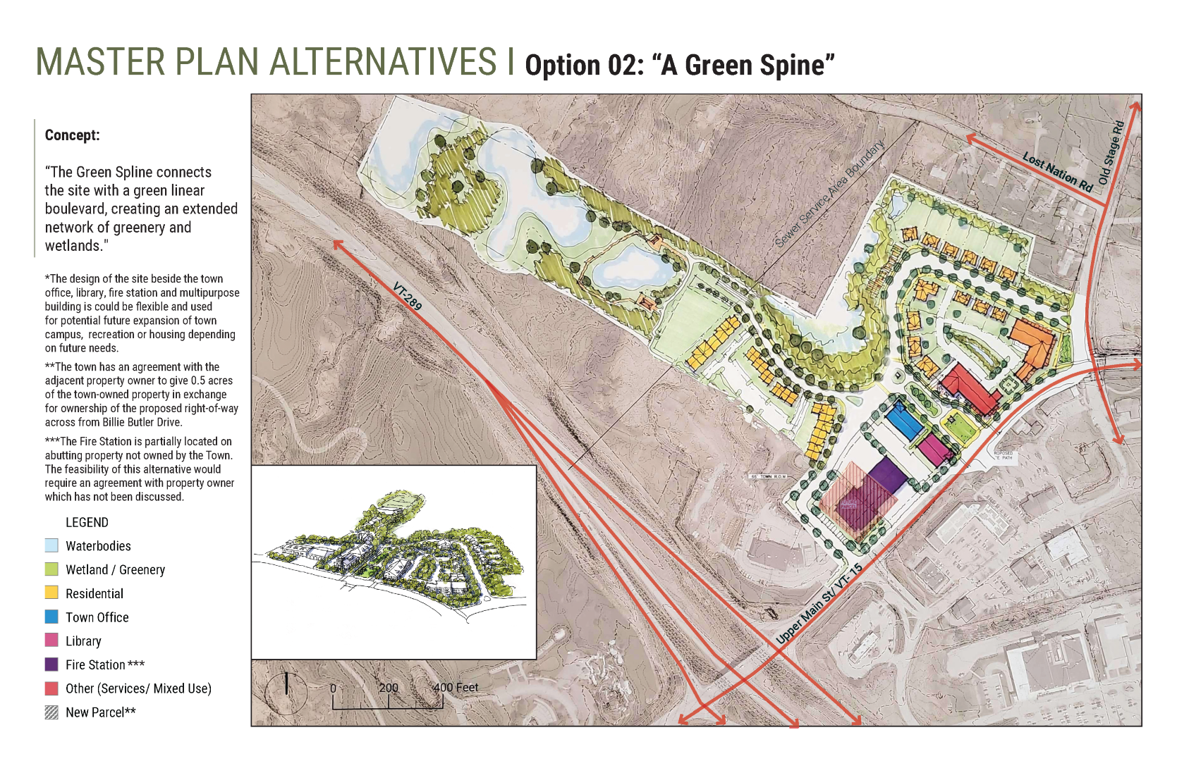 Following the purchase of 80/90 Upper Main Street in November 2023, the Selectboard was presented with the next steps and timeline for the future development of the parcels in January 2024. While it is anticipated that the 32-acre site will include municipal offices and a fire station, it still needs to be determined what other uses should be on the site, the timing of development, project costs and funding, utilities needed, and site layout. In order to determine these elements, an extensive planning process needs to occur. It is important to involve the public to make this a community-wide process and to gain the support for the development that Essex residents want to see at the center of their town.
